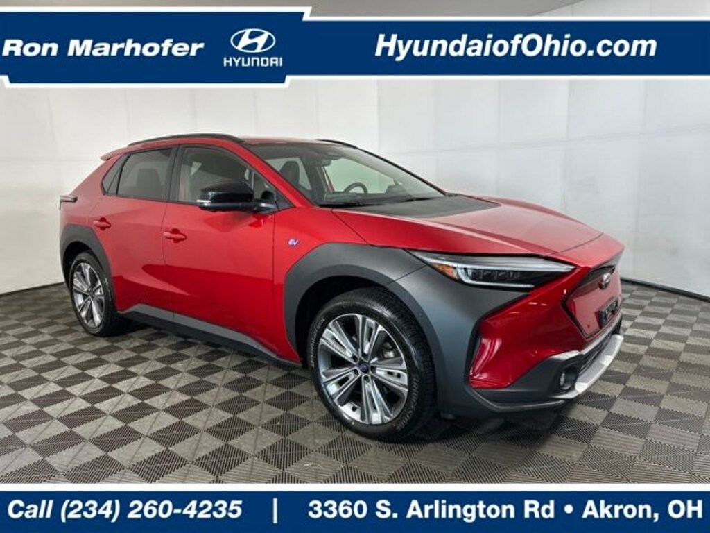 BELOW MARKET AVERAGE PRICE, ONLY 22402 MILES, ALL WHEEL DRIVE, HEATED SEATS, HEATED STEERING WHEEL, POWER LIFTGATE, LANE DEPARTURE WARNING, BLIND SPOT MONITOR/DETECTION, FORWARD COLLISION ASSIST/ALERT, REAR PARK ASSIST, ADAPTIVE CRUISE CONTROL, REAR BACKUP CAMERA, POWER SEAT, CRUISE CONTROL, ALLOY WHEELS, ONE OWNER, ACCIDENT FREE CARFAX REPORT, Solterra Limited, 4D Sport Utility, Electric Motor, 1-Speed Automatic, AWD, Elemental Red Pearl, Black Premium Synthetic, 11 Speakers, Air Conditioning, AM/FM radio: SiriusXM, Auto High-beam Headlights, Automatic temperature control, Front Center Armrest, Front dual zone A/C, Front fog lights, Fully automatic headlights, Garage door transmitter: HomeLink, Heated door mirrors, Heated Front Bucket Seats, Heated front seats, Heated rear seats, Heated steering wheel, Outside temperature display, Power door mirrors, Power driver seat, Power Liftgate, Radio: Subaru Solterra Connect 12.3" Multimedia System, Rear seat center armrest, Split folding rear seat, Spoiler, StarTex Upholstery, Steering wheel mounted audio controls, Turn signal indicator mirrors, Variably intermittent wipers, Wheels: 20" x 7.5" J Aluminum-Alloy Gray Finish.
